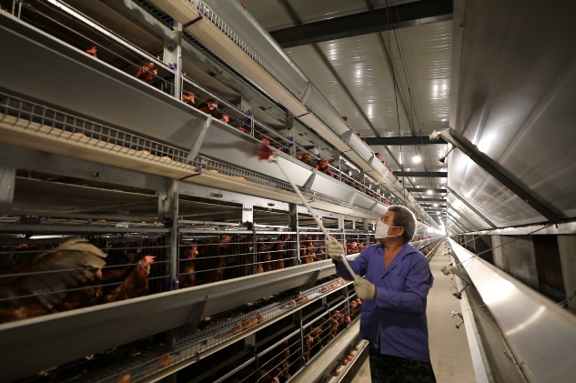 此刻正值七月,室外热浪滚滚,体感温度将近40℃,而西岭家庭农场的鸡舍内却稳稳维持在27℃,这便是“才智鸡场”的硬核实力。西岭家庭农场引入全主动蛋鸡养殖成套设备,完成主动饲喂、电脑环控、手机远程管理、主动控温清粪。产蛋舍规划为五列四层智能化立体笼,均装有无线温湿度、光照度、氨气等传感器,数据可上传手机终端展现,再按设定参数主动调理,优化环境以下降发病率。4栋鸡舍,每栋5万只鸡,1个人就能管得明明白白。