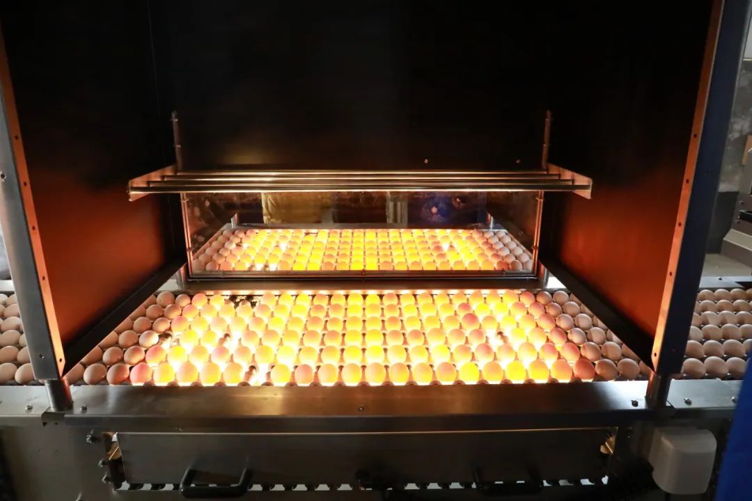 初筛、清洗、灭菌、照明、喷码……在全主动出产线上,智能化捡蛋机会给每枚鸡蛋做“体检”,灯火像探照灯般扫过,经过激光束16次“轻敲”蛋壳,裂纹蛋被敏捷分拣除掉,保证晋级卤制环节的都是“完美选手”。每枚鸡蛋上还均喷绘二维码,完成全链路溯源,精准化出仓形式保证“日产日销”,新鲜度全程在线。